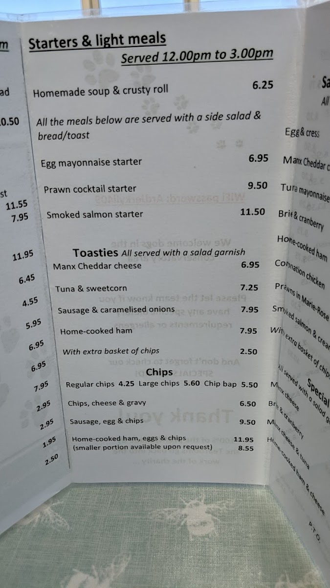 Welcome to the ManxSPCA Tearooms, a delightful cafe nestled in the charming setting of Foxdale, Isle of Man. This lovely establishment not only serves delicious food but also supports animal welfare. The menu may be small, but every dish reflects quality and care. Diners can indulge in well-prepared offerings like poached eggs on toast or a scrumptious crab sandwich, complemented by a proper pot of tea perfect for sharing.